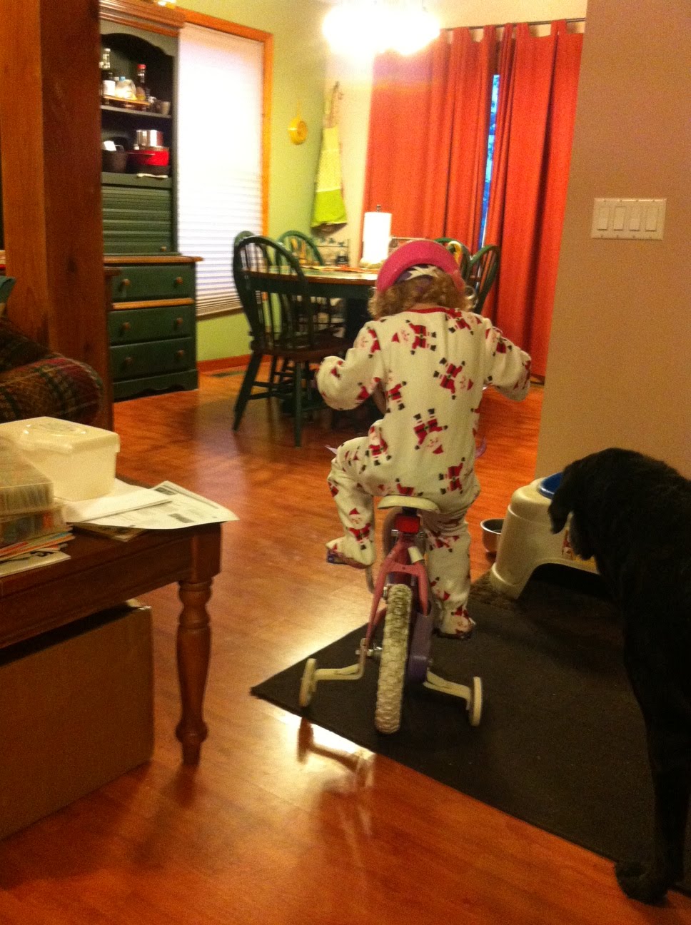 She went right for the bike throwing on her new princess helmet and she was off!